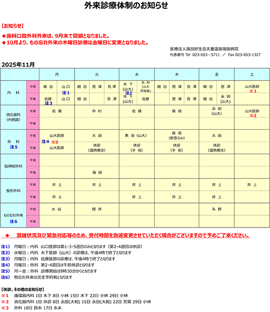 Copyright (C) 天童温泉篠田病院 2009 All rights reserved